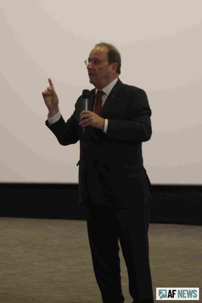 « M. François Hollande est filmé juste après avoir quitté son mandat, indique Hervé Aguillard, le directeur de l’Omnia. Donc la question se pose, que devient un président de la République après avoir fait son mandat et après avoir connu les plus hautes sphères de l’État ?»