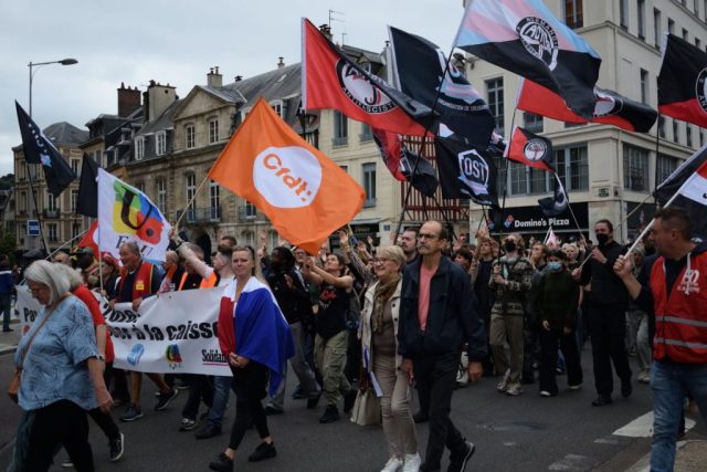 Les syndicats voyaient pour leur part les choses en grand : plus de 10 000 personnes ! Reconnaissables à leurs chasubles estampillés au nom de leur organisme, principalement le CGT, FO et la CFTDT mais pas que, les syndicalistes étaient pour leur part plus visible. Ils n’étaient pourtant pas les seuls à revendiquer, principalement le départ d’Emmanuel Macron, et à protester.