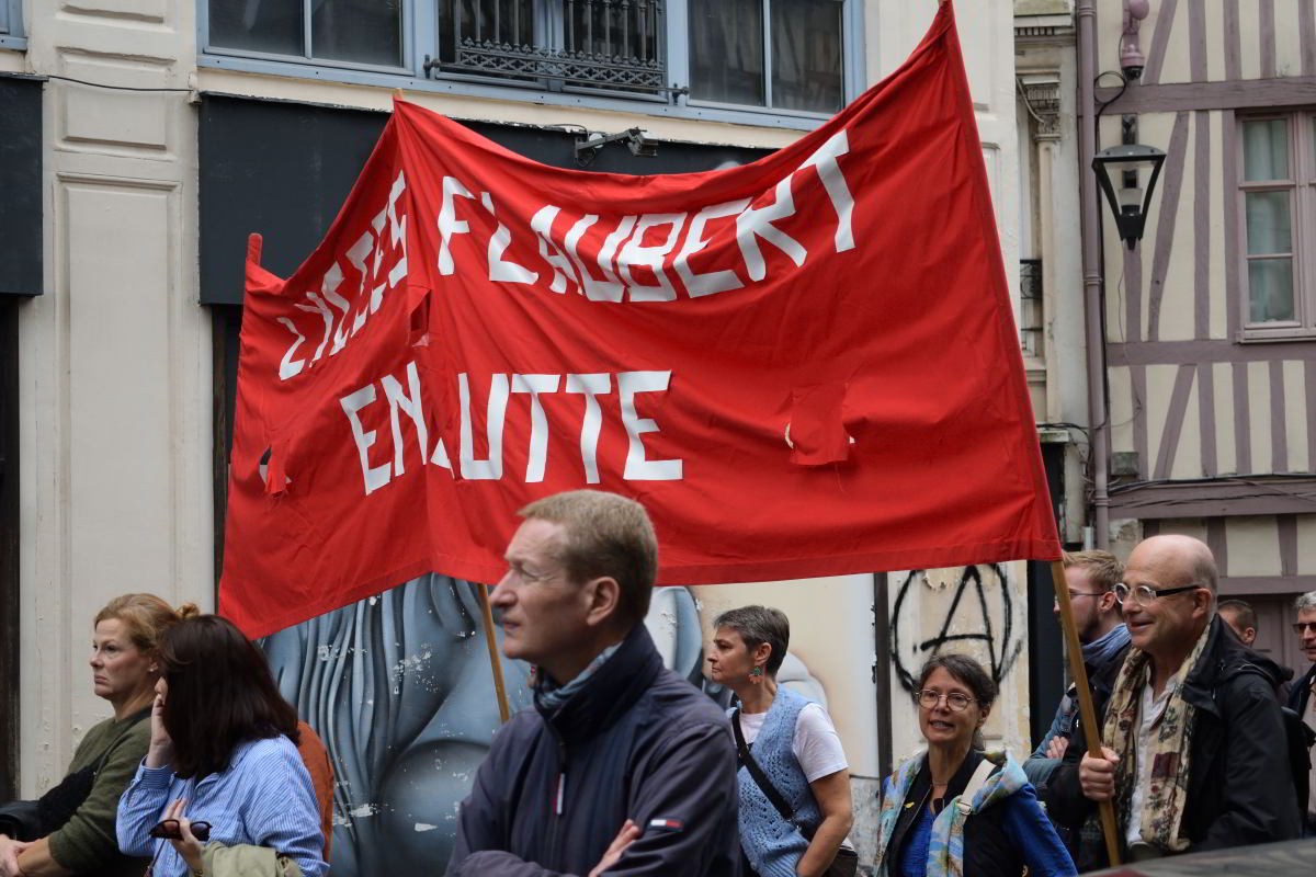 Installée devant la place l’hôtel de ville, l’association Emergence-s en avait gros sur la patate et tenait à le faire savoir. Cette association de 300 salariés implantée à Rouen et aux alentours gère notamment l’hébergement des personnes sans domicile fixe et dispose d’un pôle santé, d’un pôle justice et d’un pôle d’accompagnement social. « Nous nous occupons de la majorité des foyers pour SDF à Rouen, indique Marie, une salarié. Nous sommes en redressement judiciaire depuis le dépôt d’une cessation de paiement en avril dernier par notre direction et notre Conseil d’Administration. Emergence-s a une dette estimée à 6 millions d’euros. »