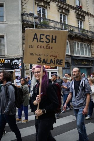 Une AG avec les étudiants du travail social est d’ores et déjà inscrite à l’agenda le 24 septembre prochain. « L’objectif, ce n’est pas qu’on crève, poursuit Marie, mais que l’on puisse faire notre travail dignement, que l’on puisse accompagner les gens les plus abimés d’une façon correcte. Macron, c’est aussi la politique sociale. Donc finalement : Démission Macron ! »