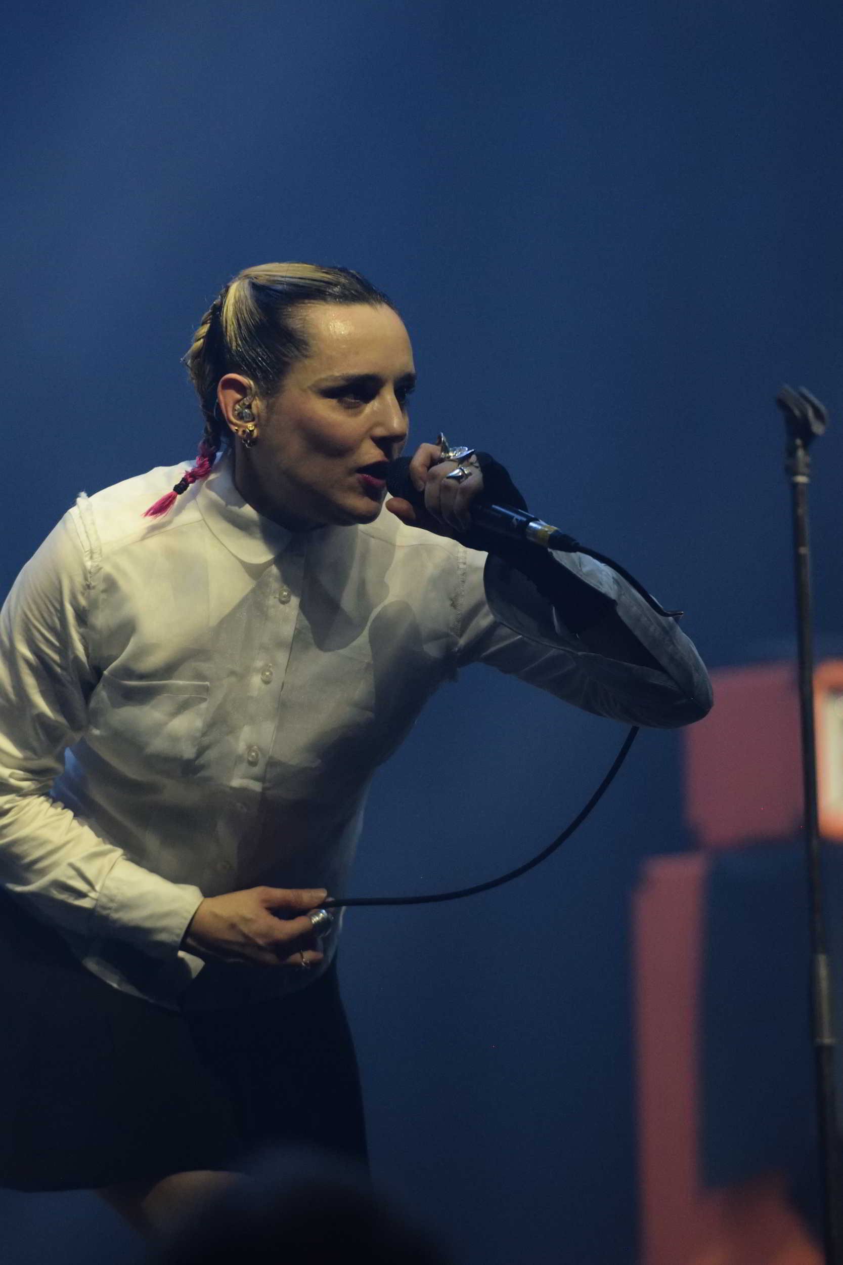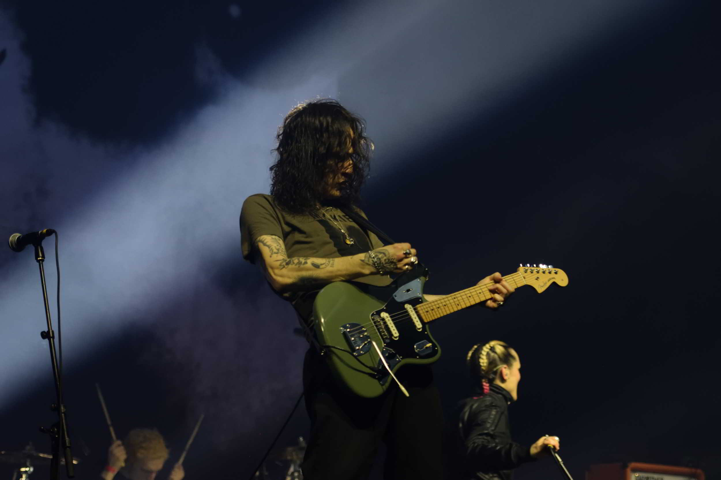 Dans le désordre : le set consiste à courir partout, à faire des pompes, à inviter une fan à venir en faire sur scène, et surtout, et c’est le nouveau sport à la mode, de se faire porter par le public ou pogoter dans la fosse, toujours au contact. Deux belles reprises, dont le fabuleux « Army of Me » de Björk mais aussi « In Heaven » de The David Lynch popularisé par The Pixies, finissent d’emballer le tout avec passion et fureur.